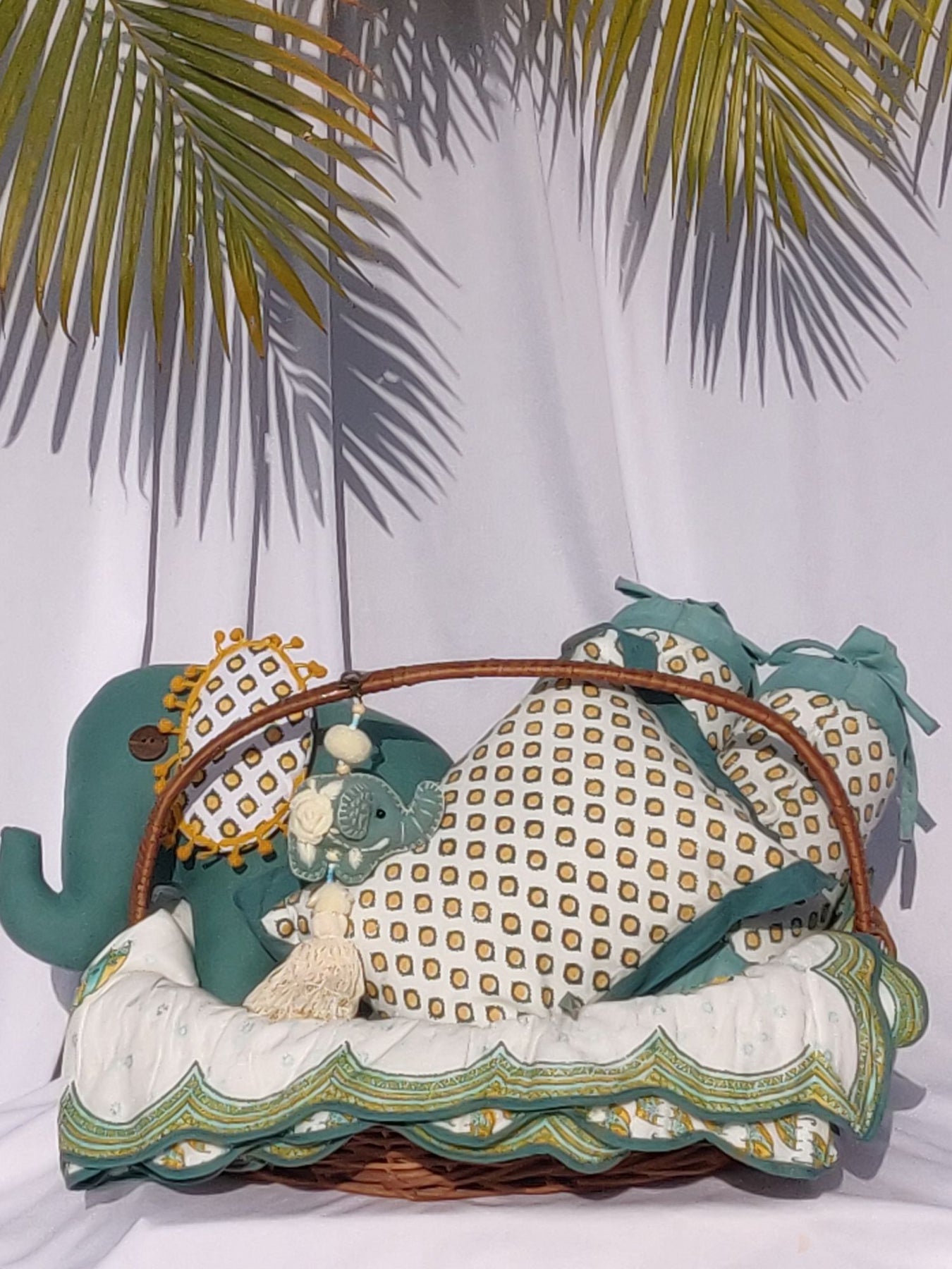 “Tiny dreams, big cuddles 🐘💤 An adorable ele-themed hamper with cozy bedding accessories for happy little naps.”