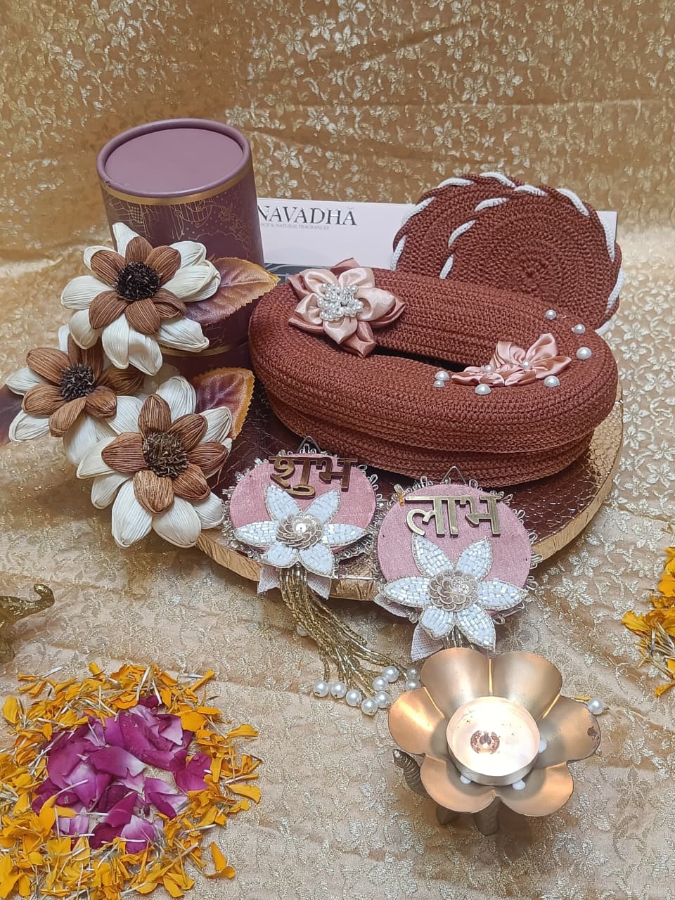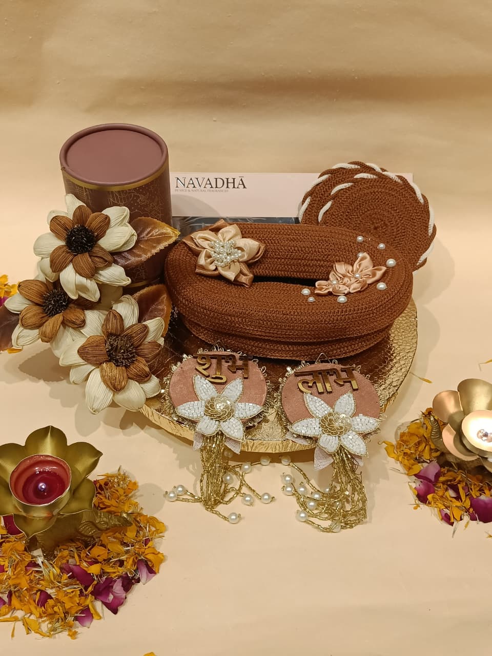 All beautifully placed in a peach-toned platter with festive décor, making it a perfect blend of tradition and utility 🌿💫