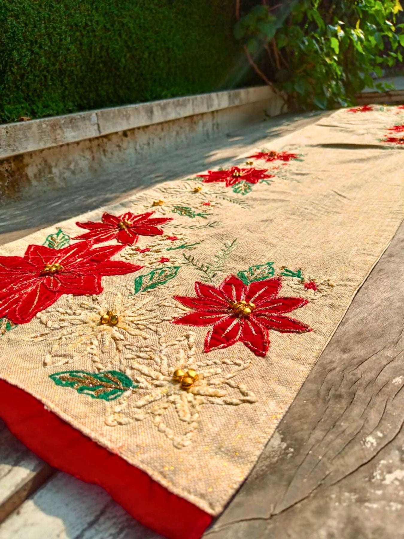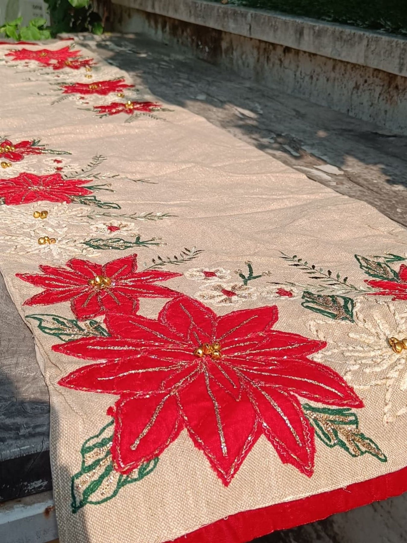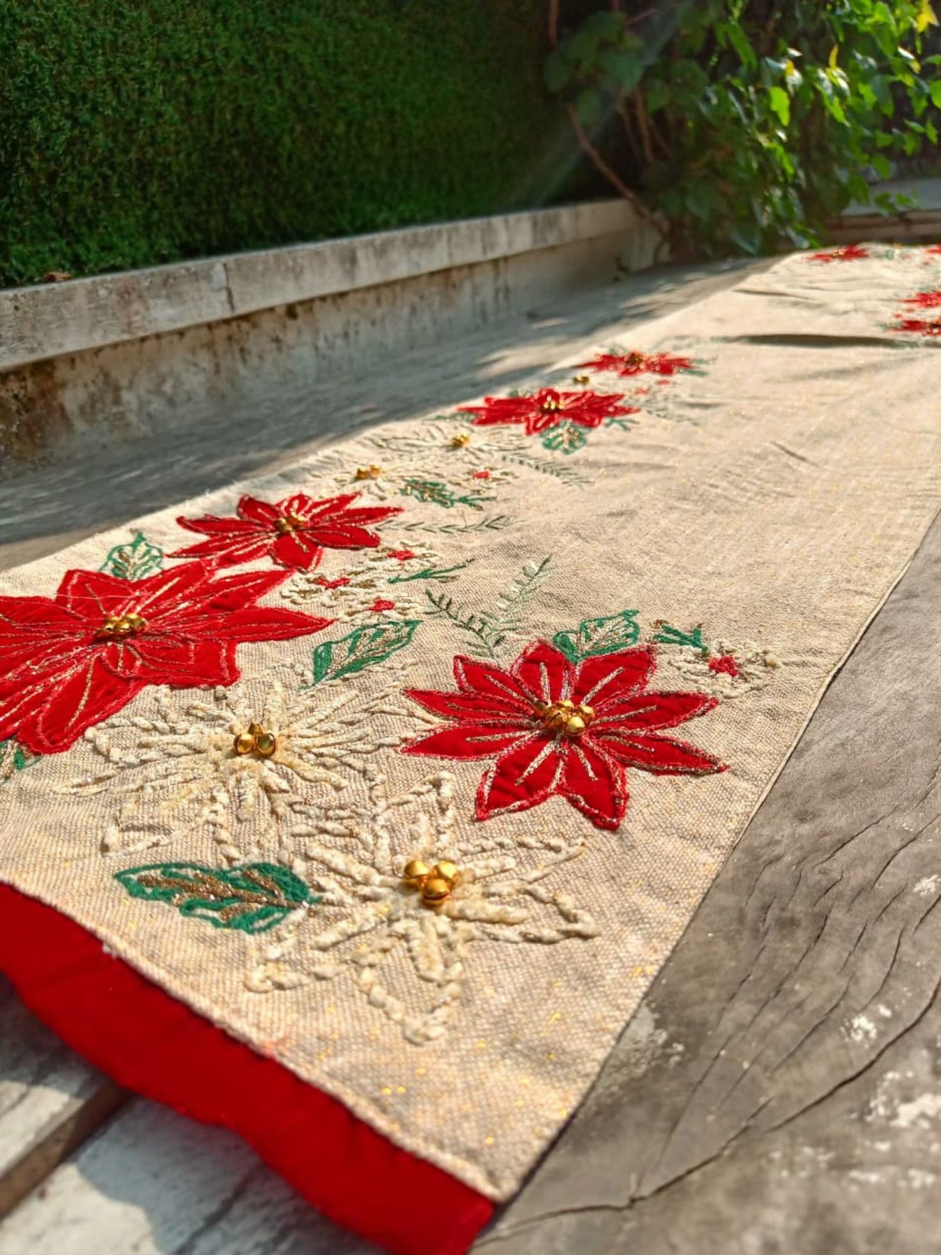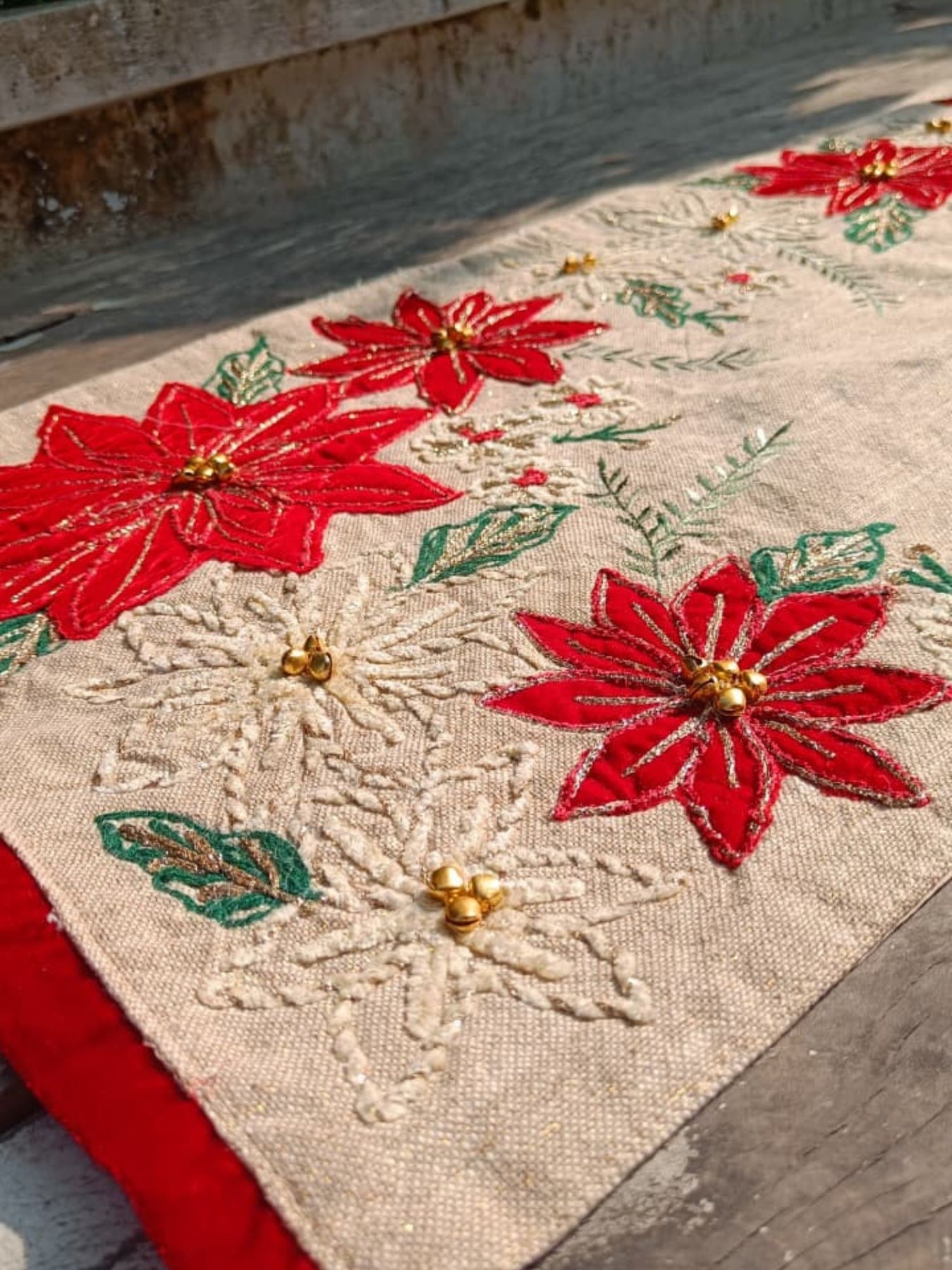 Dress your table in festive charm with our embroidered jute runner ❄️🔔❤️”