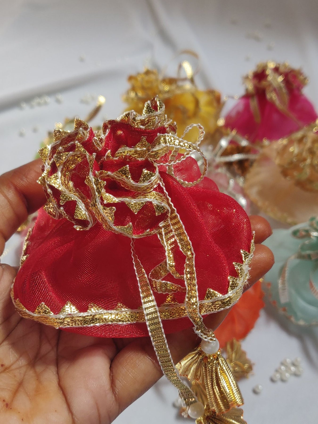 [{"id":42137043304525,"title":"Red","option1":"Red","option2":null,"option3":null,"sku":null,"requires_shipping":true,"taxable":true,"featured_image":null,"available":true,"name":"Prashaad Potli - Red","public_title":"Red","options":["Red"],"price":15000,"weight":0,"compare_at_price":null,"inventory_management":"shopify","barcode":"","requires_selling_plan":false,"selling_plan_allocations":[]},{"id":42137043337293,"title":"Pink","option1":"Pink","option2":null,"option3":null,"sku":null,"requires_shipping":true,"taxable":true,"featured_image":null,"available":true,"name":"Prashaad Potli - Pink","public_title":"Pink","options":["Pink"],"price":15000,"weight":0,"compare_at_price":null,"inventory_management":"shopify","barcode":"","requires_selling_plan":false,"selling_plan_allocations":[]},{"id":42137043370061,"title":"Orange","option1":"Orange","option2":null,"option3":null,"sku":null,"requires_shipping":true,"taxable":true,"featured_image":null,"available":true,"name":"Prashaad Potli - Orange","public_title":"Orange","options":["Orange"],"price":15000,"weight":0,"compare_at_price":null,"inventory_management":"shopify","barcode":"","requires_selling_plan":false,"selling_plan_allocations":[]},{"id":42151236468813,"title":"Green","option1":"Green","option2":null,"option3":null,"sku":null,"requires_shipping":true,"taxable":true,"featured_image":null,"available":true,"name":"Prashaad Potli - Green","public_title":"Green","options":["Green"],"price":15000,"weight":0,"compare_at_price":null,"inventory_management":"shopify","barcode":"","requires_selling_plan":false,"selling_plan_allocations":[]},{"id":42151236501581,"title":"Gold","option1":"Gold","option2":null,"option3":null,"sku":null,"requires_shipping":true,"taxable":true,"featured_image":null,"available":false,"name":"Prashaad Potli - Gold","public_title":"Gold","options":["Gold"],"price":15000,"weight":0,"compare_at_price":null,"inventory_management":"shopify","barcode":"","requires_selling_plan":false,"selling_plan_allocations":[]},{"id":42151236534349,"title":"Blue","option1":"Blue","option2":null,"option3":null,"sku":null,"requires_shipping":true,"taxable":true,"featured_image":null,"available":false,"name":"Prashaad Potli - Blue","public_title":"Blue","options":["Blue"],"price":15000,"weight":0,"compare_at_price":null,"inventory_management":"shopify","barcode":"","requires_selling_plan":false,"selling_plan_allocations":[]},{"id":42151236567117,"title":"Peach","option1":"Peach","option2":null,"option3":null,"sku":null,"requires_shipping":true,"taxable":true,"featured_image":null,"available":true,"name":"Prashaad Potli - Peach","public_title":"Peach","options":["Peach"],"price":15000,"weight":0,"compare_at_price":null,"inventory_management":"shopify","barcode":"","requires_selling_plan":false,"selling_plan_allocations":[]},{"id":42151236599885,"title":"Yellow","option1":"Yellow","option2":null,"option3":null,"sku":null,"requires_shipping":true,"taxable":true,"featured_image":null,"available":true,"name":"Prashaad Potli - Yellow","public_title":"Yellow","options":["Yellow"],"price":15000,"weight":0,"compare_at_price":null,"inventory_management":"shopify","barcode":"","requires_selling_plan":false,"selling_plan_allocations":[]},{"id":42285197721677,"title":"Rose pink","option1":"Rose pink","option2":null,"option3":null,"sku":null,"requires_shipping":true,"taxable":true,"featured_image":null,"available":true,"name":"Prashaad Potli - Rose pink","public_title":"Rose pink","options":["Rose pink"],"price":15000,"weight":0,"compare_at_price":null,"inventory_management":"shopify","barcode":"","requires_selling_plan":false,"selling_plan_allocations":[]}]