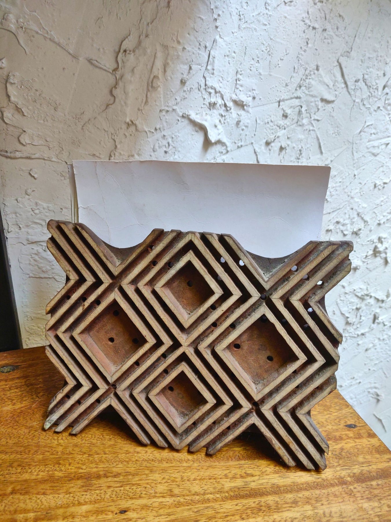 Our upcycled paper holder is crafted from discarded block printing blocks, turning forgotten craftsmanship into a beautiful tissue or paper holder — perfect to adorn your table with a touch of tradition and sustainability.