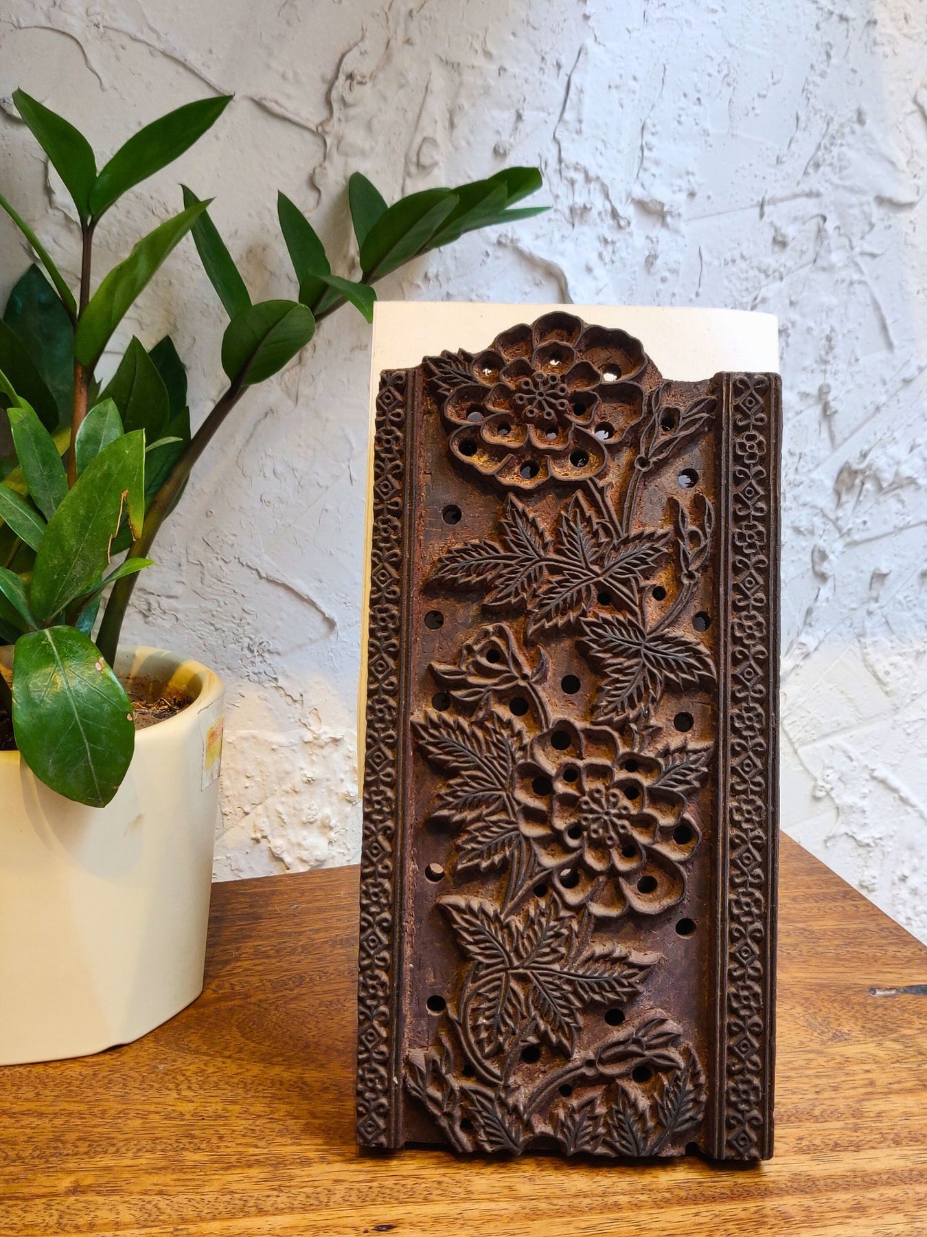 Our upcycled paper holder is crafted from discarded block printing blocks, turning forgotten craftsmanship into a beautiful tissue or paper holder — perfect to adorn your table with a touch of tradition and sustainability.